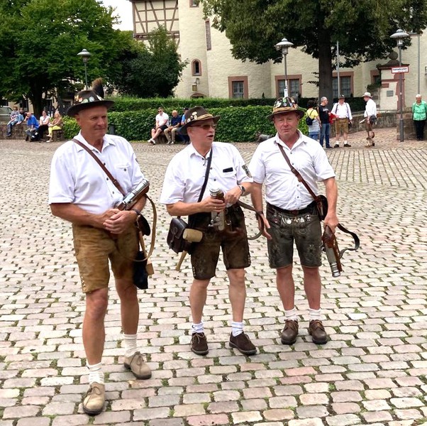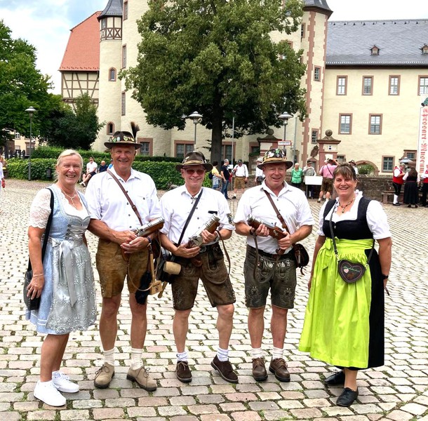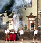 25. Juli 2025 - Der Schützen-Club nimmt mit den Böllerschützen Burkard Zink, Ludwig Hetzer und Stefan Konrad sowie Anke Zink und Kerstin Konrad am Böllerschießen zur Eröffnung der Spessart-Festwoche in Lohr teil.