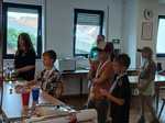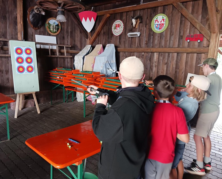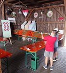 Sie konnten unter anderem ihre Zielsicherheit mit der Laserpistole und dem Lasergewehr ausprobieren, mit dem Blasrohr auf Zielscheiben schießen und sich beim Dosenwerfen versuchen sowie mit den Dartpfeilen auf die Wurfscheibe zielen und ihr Wissen bei verschiedenen Schätzfragen beweisen. Alle erhielten eine Urkunde und der Sieger einen Kino-Gutschein.